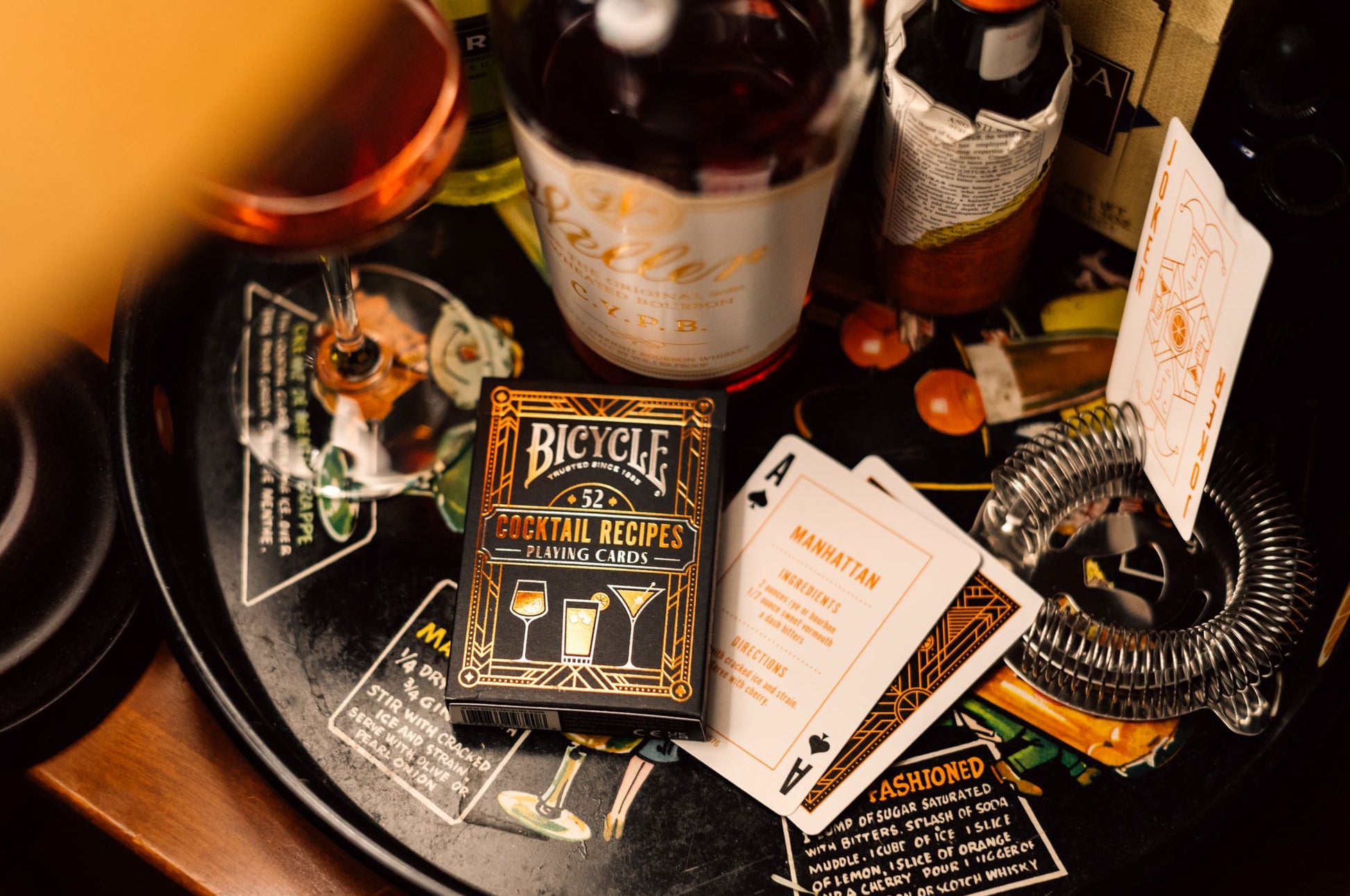 What's better than a round of cards? A round of cards with a round of drinks! The possibilities are (almost) endless with 52 different cocktail recipes on the 52 card faces. With copper and silver highlights on the tuck case, the Bicycle Cocktail deck is perfect addition to your next party!