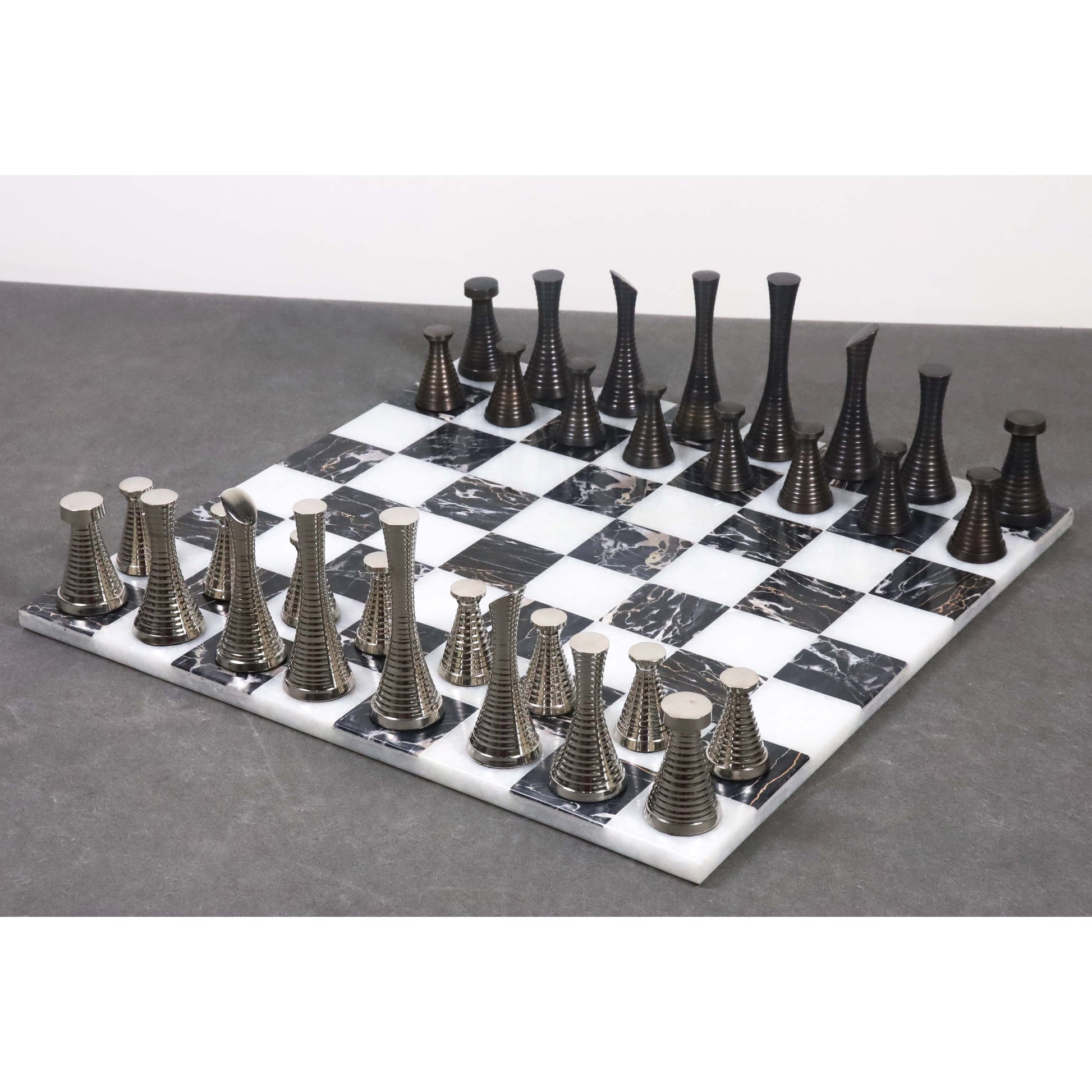 Brass Chess Set combo of 3.9" Modern Chess Pieces + 15" Black Marble Chessboard