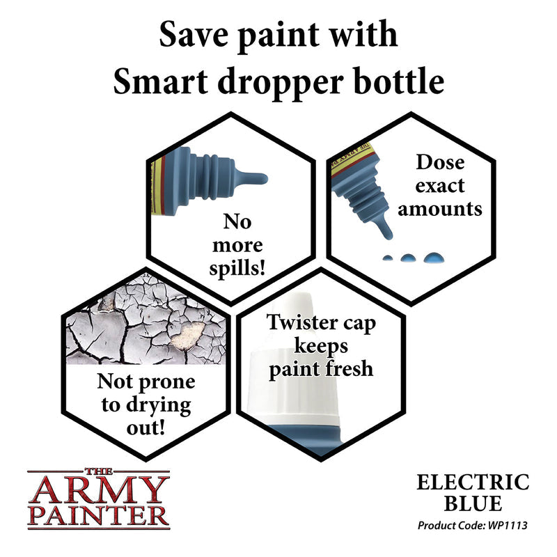 Introducing AP Warpaints Electric Blue - the perfect addition to your miniature painting arsenal! These high pigment colors make painting your army a breeze, so you can spend less time painting and more time gaming. Made with the Army Painter System, it's perfect for any period, size, or system. Let's get painting!