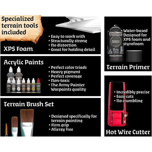 Armed with specially manufactured XPS foam board and a versatile hot wire cutter, go crazy and don't let anything but your imagination hold you back! Find inspiration in our many online tutorial videos, or the inspirational guide included in this set, to conjure up any dungeon or cavern complex you might want. Do it yourself or with your party - once you cut and create your first magic portal, you'll never look back!