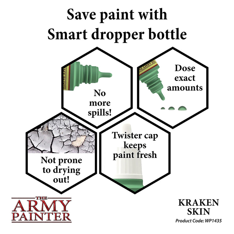 Introducing the AP Warpaints Kraken Skin! With high pigment colors, our range is perfect for miniatures from any time period, any size, and any system. Speed up your army painting with the Army Painter System and have more time to conquer the gaming world!