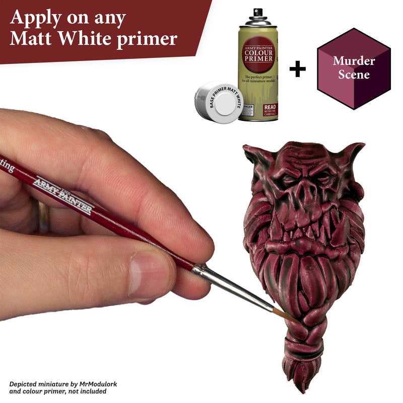 Before using Speedpaints, we recommend priming your miniatures with Colour Primer Matt White, Colour Primer Brainmatter Beige or Colour Primer Ash Grey to achieve your most vibrant results. However, you can also experiment with other Colour Primes like Necrotic Flesh, Skeleton Bone, or Gun Metal etc. to achieve other cool effects.