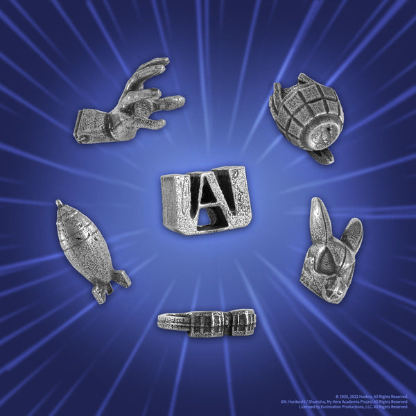 Build your hero team in MONOPOLY®: My Hero Academia! Make your way across the board choosing between Class 1-A's best and brightest, including fan favorite students and teachers. Draw from Go Beyond! and Plus Ultra! decks to advance your team, but make sure to avoid Detention!