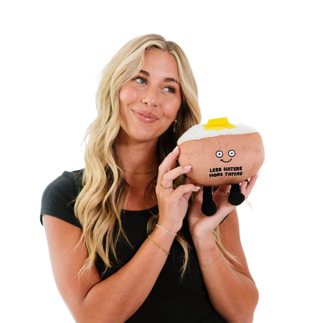 Spuds are buds! Mash 'em, boil' em, put ‘em in a stew– doesn’t matter they’ll be there for you. It’s weighted base and dangling legs will keep this positive potato plushie upright no matter where you show it off.