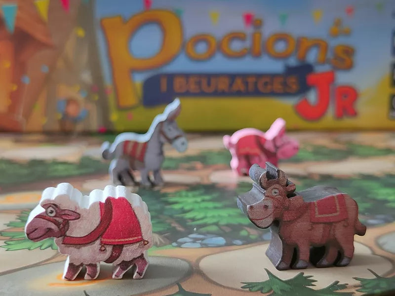 If you draw a dream token, place it on one of the clouds on your animal board. After you draw and place a third dream token, use all the rubies on your board to buy new tokens — no two being the same color, mind you — then place these new tokens and all previously drawn tokens in your bag. Keep taking turns until someone reaches the end of the track and wins!