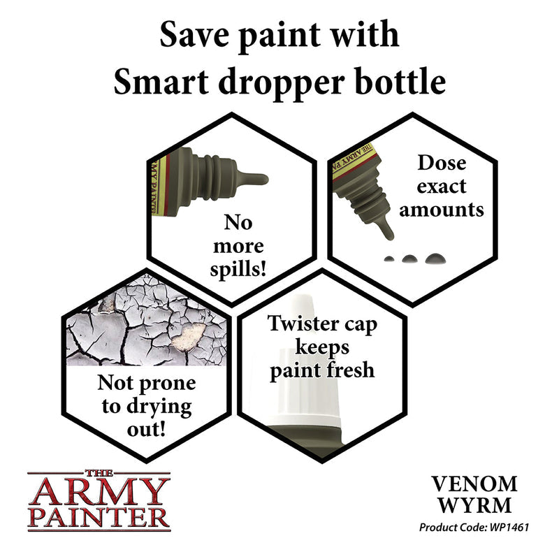 Unleash your inner artist and paint your miniatures with ease using AP Warpaints Venom Wyrm. This range of high pigment colours is perfect for any period, size, and system. Plus, with The Army Painter System, you can get your army painted quickly, leaving you more time for epic battles!